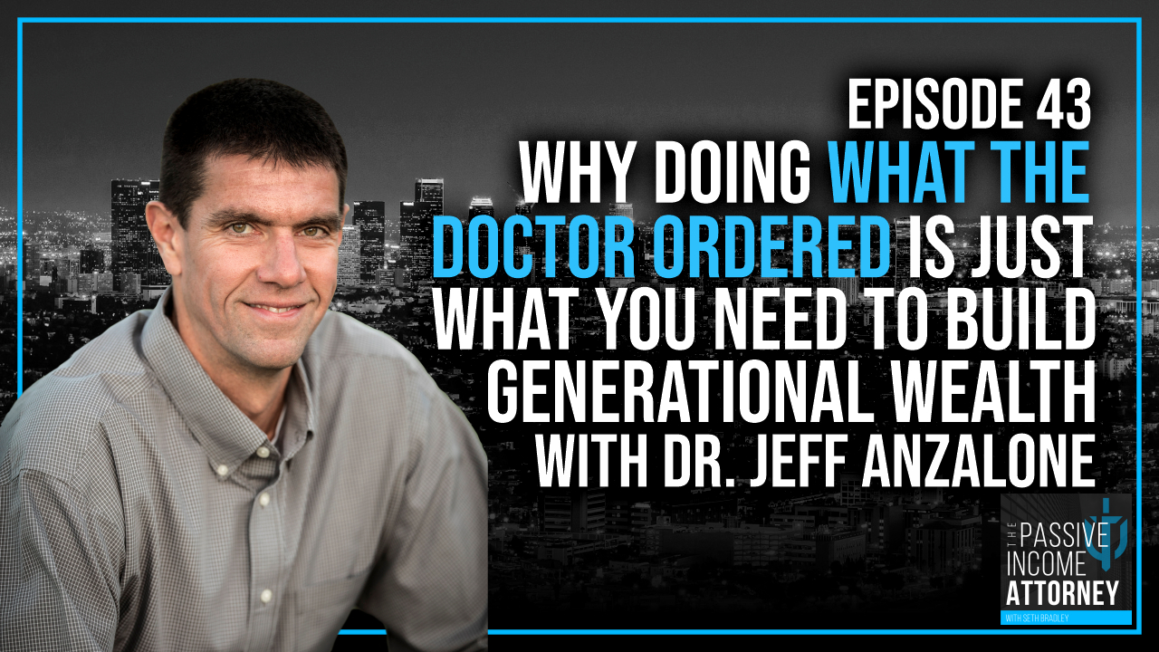 On this episode of the Passive Income Attorney podcast, Seth is joined by full-time periodontist Dr. Jeff Anzalone as they talk about his perspective as an investor-doctor, and why you need to reconsider the way you think about money, the educational system, and your future. Apart from being a dentist in the great state of Louisiana, Dr. Jeff is also an author and the founder of DebtFreeDr.com. His focus is on helping doctors and other high-income professionals create passive income from real estate, so they can stop trading time for money. Enjoy!